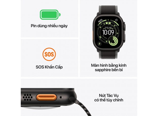 Apple Watch Ultra 3 là chiếc Apple Watch tiên tiến nhất, mang đến các tính năng sức khỏe, thể chất, an toàn và kết nối mở rộng, đồng thời chuyển đổi liền mạch giữa một chiếc đồng hồ thể thao mạnh mẽ, một chiếc đồng hồ thông minh thanh lịch và một người bạn đồng hành chăm sóc sức khỏe toàn diện.