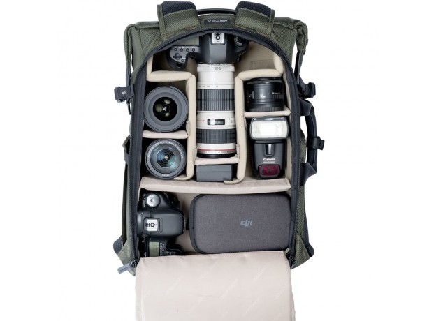 Vẻ ngoài bóng bẩy kết hợp với khả năng bảo vệ chắc chắn, ba lô Vanguard Veo Select 45M dễ dàng bảo vệ máy ảnh mirrorless/CSC/hybrid có gắn ống kính, 2-3 ống kính phụ, đèn flash và phụ kiện. Ngoài ra, nó cũng phù hợp đựng flycam cỡ nhỏ hoặc kèm thiết bị quay phim (gimbal, bộ âm thanh, ánh sáng). Bố cục vách ngăn ban đầu được sắp đặt như ba lô ban ngày, với phần trên ba lô có thể mở vào qua lối khóa kéo. Bộ vách ngăn có thể dễ dàng sắp xếp để sử dụng tận dụng toàn bộ không gian ba lô và dễ dàng tiếp cận máy ảnh.