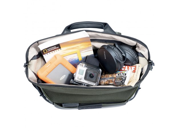 Các túi bên trong và bên ngoài được đặt ở vị trí chiến lược cho phép sắp xếp các vật dụng cần thiết khác. Máy tính xách tay lên đến 13inch có thể cất trong ngăn riêng mở ở mặt lưng, túi khóa kéo hai mặt có thể đựng thêm sổ tay, máy tính bảng hoặc làm móc treo áo khoác, còn một túi nhỏ khác trên cùng kín đáo để cất điện thoại tiện dụng. Túi ẩn phía sau bảo vệ các vật có giá trị như ví hoặc tài liệu du lịch ở gần cơ thể bạn. Mở rộng sức chứa với khả năng kết nối bằng các vòng dây đeo bên hông, túi hông lớn đựng vừa với một chai nước hoặc tripod, monopod, chân đèn.