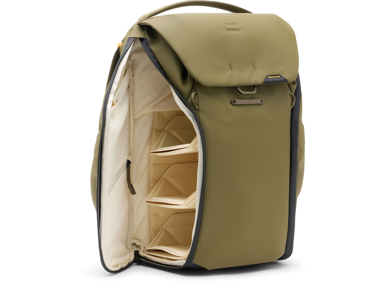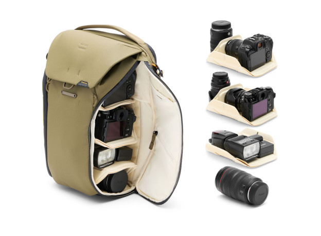 Ba lô Peak Design Everyday cho phép truy cập ngăn chính qua nắp trên hoặc các khe mở bên hông có khóa kéo. Nhiều chốt nam châm trên nắp trên điều chỉnh chiều cao của ba lô. Cấu trúc nâng cao của mặt sau tối ưu hóa lưu thông không khí, giảm thiểu đổ mồ hôi trong môi trường ấm áp. Các vách ngăn có bề mặt gập ra để đệm và giữ các vật dụng cố định vào các khe mở bên hông có khóa kéo. Khóa kéo mở bên hông bền, chống chịu thời tiết với tay kéo lớn có thể khóa được. Thiết kế có thể nén và điều chỉnh kích thước. Dây đeo vai có thể được cố định bằng nam châm vào mặt sau trong quá trình cất giữ và vận chuyển.