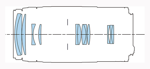 - Kết cấu ống kính: 13 thấu kính chia thành 9 nhóm