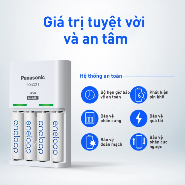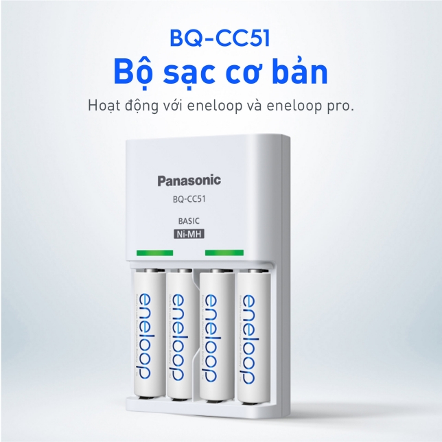 Bộ sạc pin Panasonic Eneloop BQ-CC51 tương thích với cả pin eneloop và pin eneloop pro, mang lại hiệu suất và chi phí tuyệt vời.