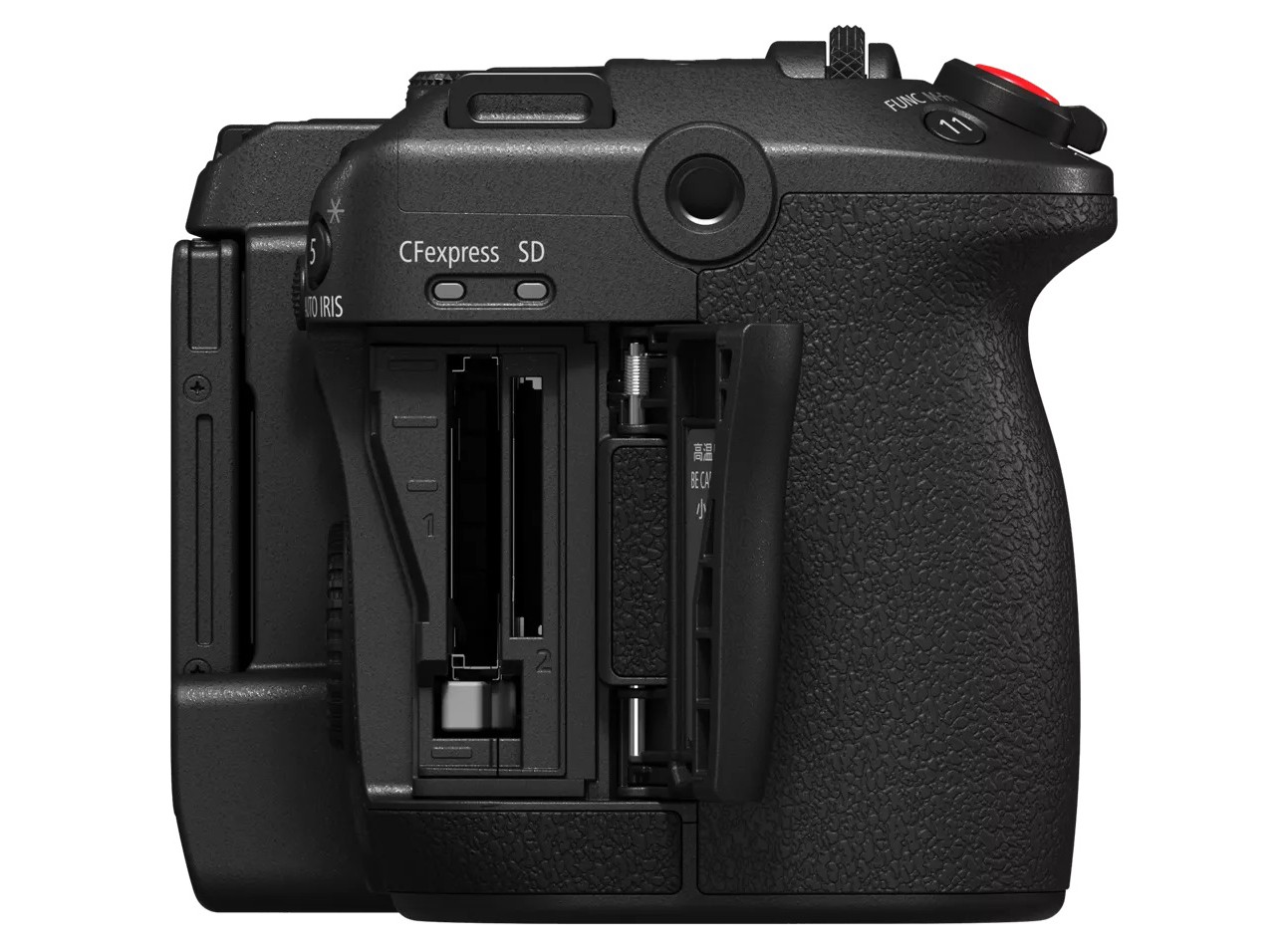 Máy quay Canon C50 bao gồm hai khe cắm thẻ khác nhau — một thẻ CFexpress Type B và một thẻ SD. Cả hai khe cắm đều hỗ trợ ghi đồng thời ngay cả khi quay ở định dạng RAW. Tất cả các tùy chọn ghi được lưu vào thẻ CFexpress đã lắp, trong khi các tùy chọn ghi phụ và ghi proxy được lưu vào thẻ SD đã lắp.