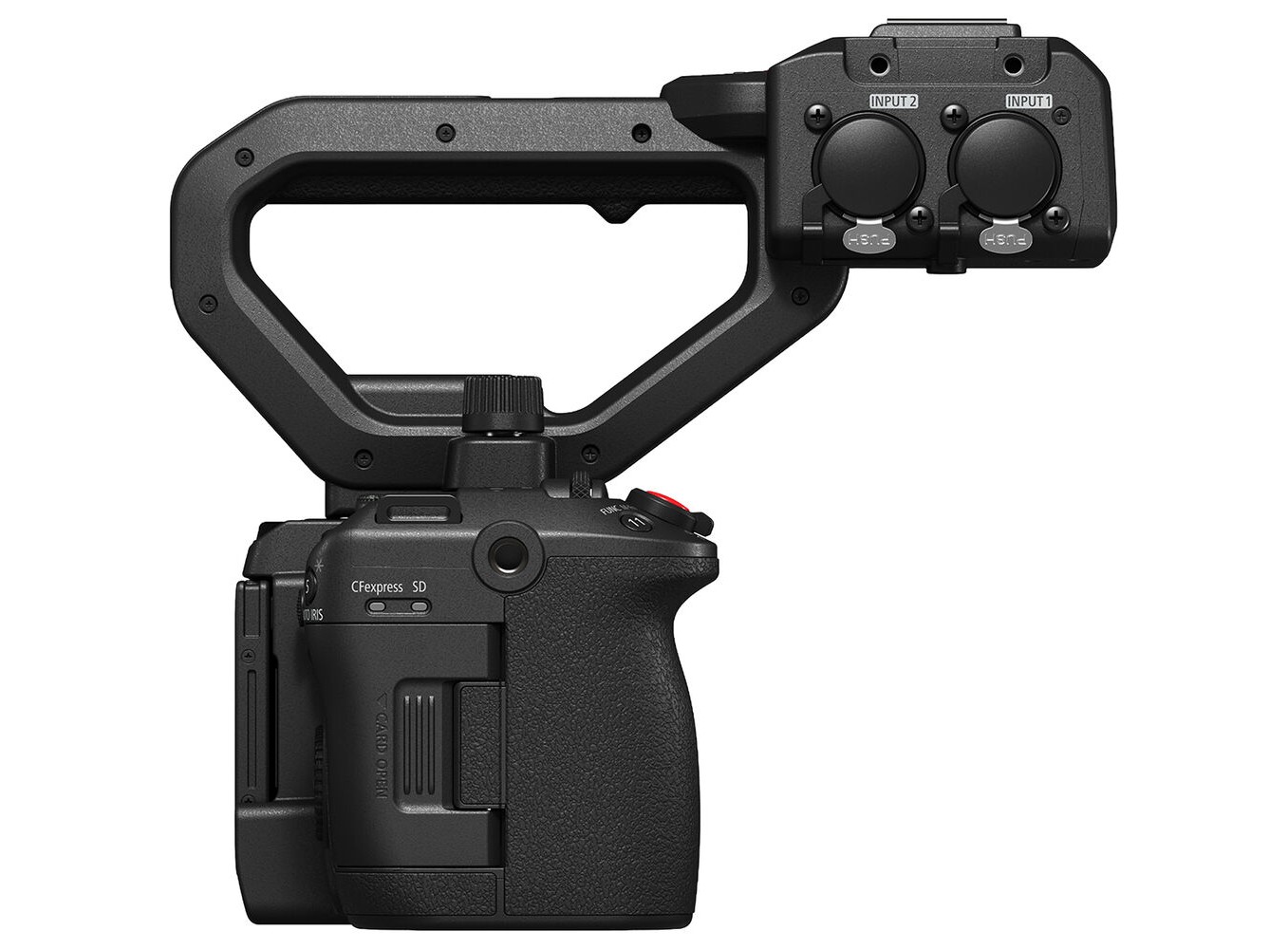 Tay cầm đi kèm, có thể tháo rời, cung cấp thêm kết nối cho cấu hình cầm tay C50 của bạn. Hai đầu vào XLR 3 chân kích thước đầy đủ với nguồn phantom 48V cho phép bạn tích hợp micro shotgun. Nút bắt đầu/dừng quay tích hợp và nút chỉnh zoom giúp bạn dễ dàng điều khiển khi quay các cảnh góc thấp.