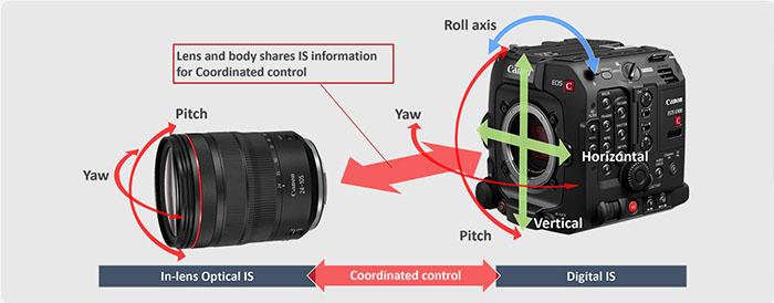 Hệ thống IS chống rung kỹ thuật số trong thân máy và IS chống rung quang học trong ống kính của EOS C80 hoạt động cùng nhau thông qua điều khiển phối hợp để mang lại khả năng ổn định hình ảnh mạnh mẽ. Điều này có thể thực hiện được nhờ ngàm RF, cho phép truyền thông tốc độ cao giữa ống kính và máy ảnh.