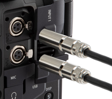 Có thể gắn micrô chuyên nghiệp vào hai đầu nối mini XLR của EOS C80 với nguồn điện ảo 48 volt để ghi âm thanh độ nét cao. Đầu vào micrô 3,5 mm cũng có sẵn để kết nối các micrô khác nhau.