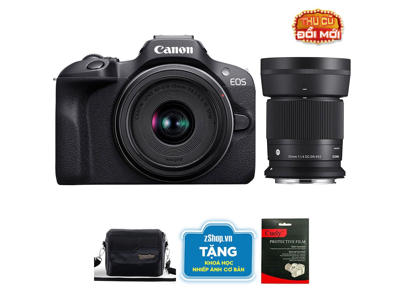 Canon EOS R100 Kit 18-45mm + Sigma 30mm f/1.4 (Chính hãng)