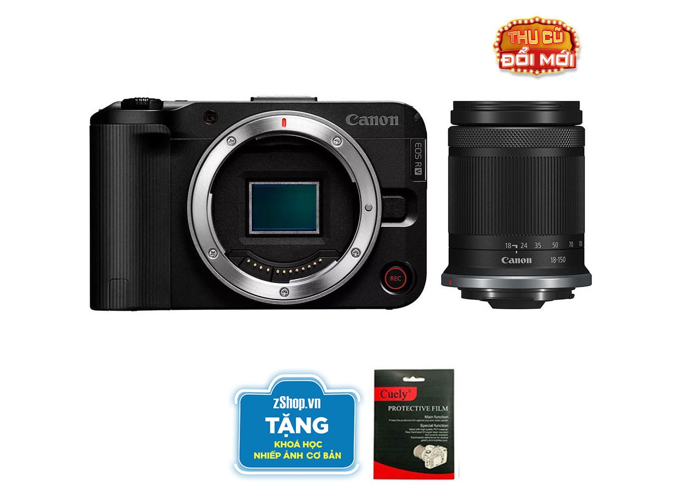 Canon EOS R50 V (Chính hãng) (Kèm Lens Canon RF-S 18-150mm f/3.5-6.3, Black, Thẻ Nhớ 64GB + Khóa Học Nhiếp Ảnh + Dán Màn Hình)