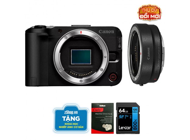 Canon EOS R50 V (Chính hãng) (Kèm Ngàm Canon EF-EOS R, Black, Thẻ Nhớ 64GB + Khóa Học Nhiếp Ảnh + Dán Màn Hình)