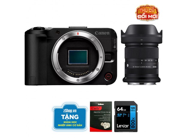 Canon EOS R50 V (Chính hãng) (Kèm Lens Sigma 18-50mm f/2.8, Black, Thẻ Nhớ 64GB + Khóa Học Nhiếp Ảnh + Dán Màn Hình)