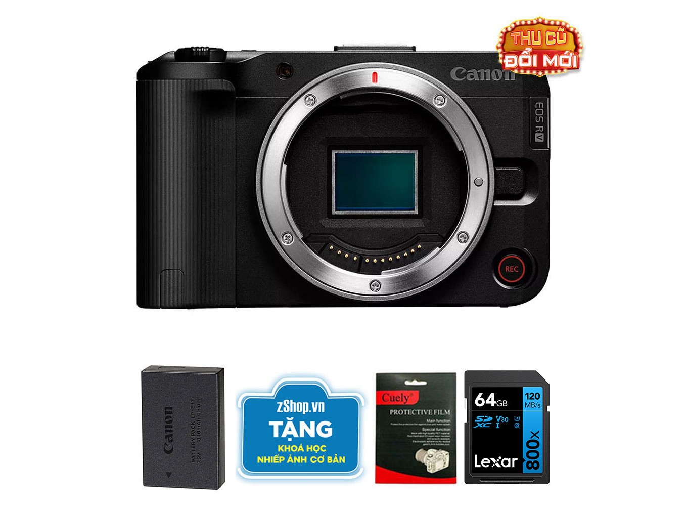 Canon EOS R50 V (Chính hãng) (Body Only, Black, Pin + Thẻ Nhớ 64GB + Khóa Học Nhiếp Ảnh + Dán Màn Hình)