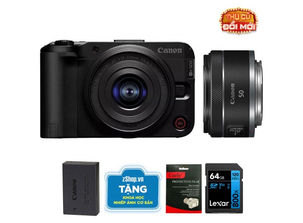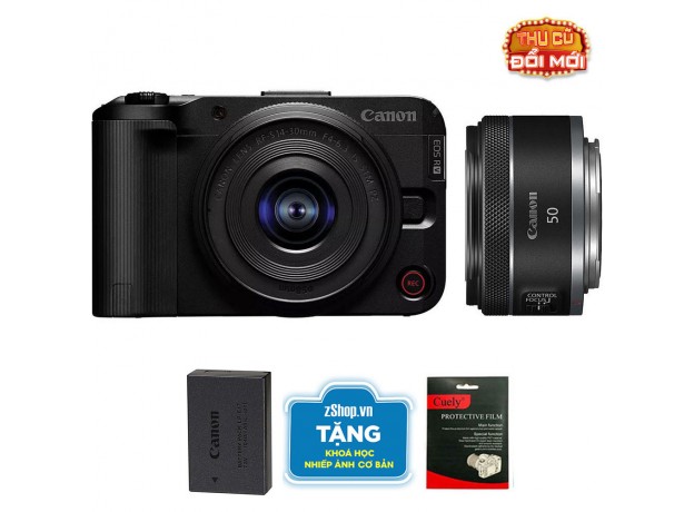 Canon EOS R50 V (Chính hãng) (Kèm Kit Lens 14-30mm + Canon RF 50mm f/1.8 STM, Black, Pin + Thẻ Nhớ 64GB + Khóa Học Nhiếp Ảnh + Dán Màn Hình)