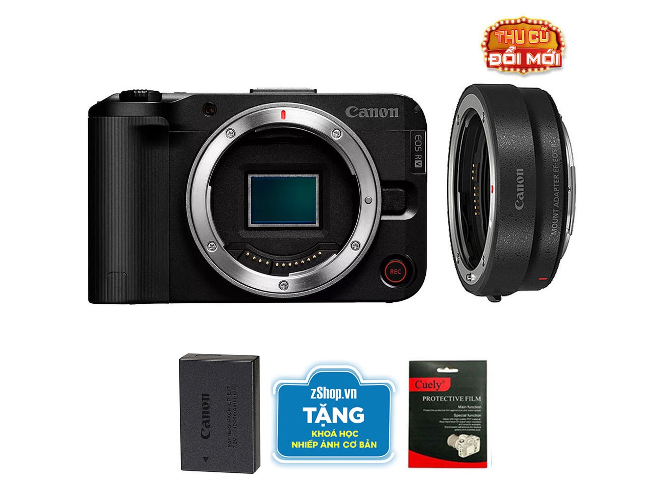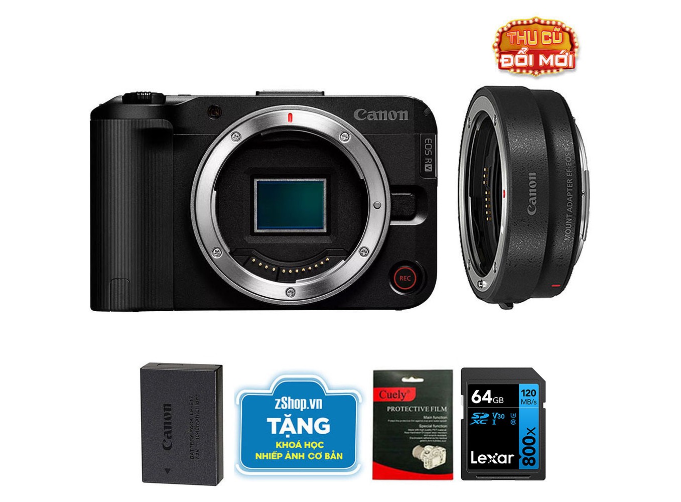 Canon EOS R50 V (Chính hãng) (Kèm Ngàm Canon EF-EOS R, Black, Pin + Thẻ Nhớ 64GB + Khóa Học Nhiếp Ảnh + Dán Màn Hình)