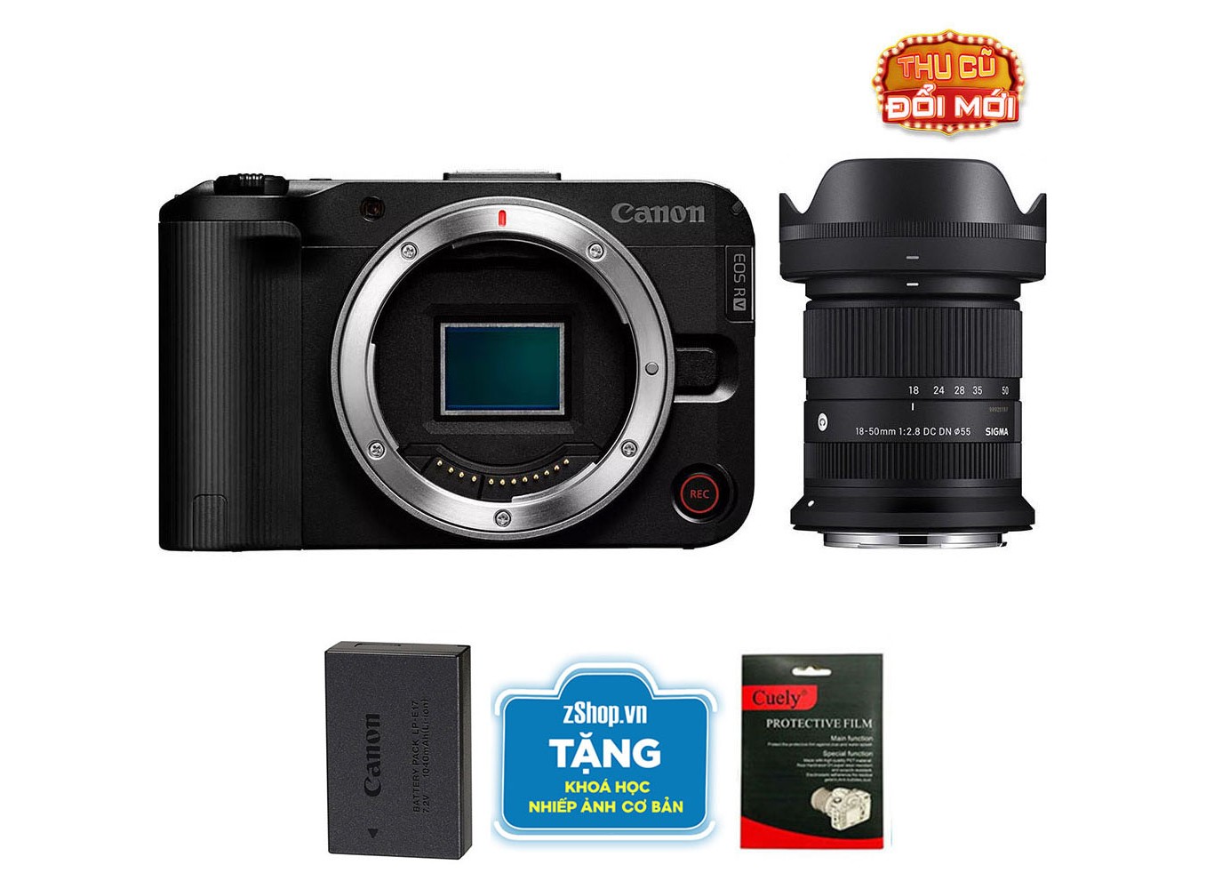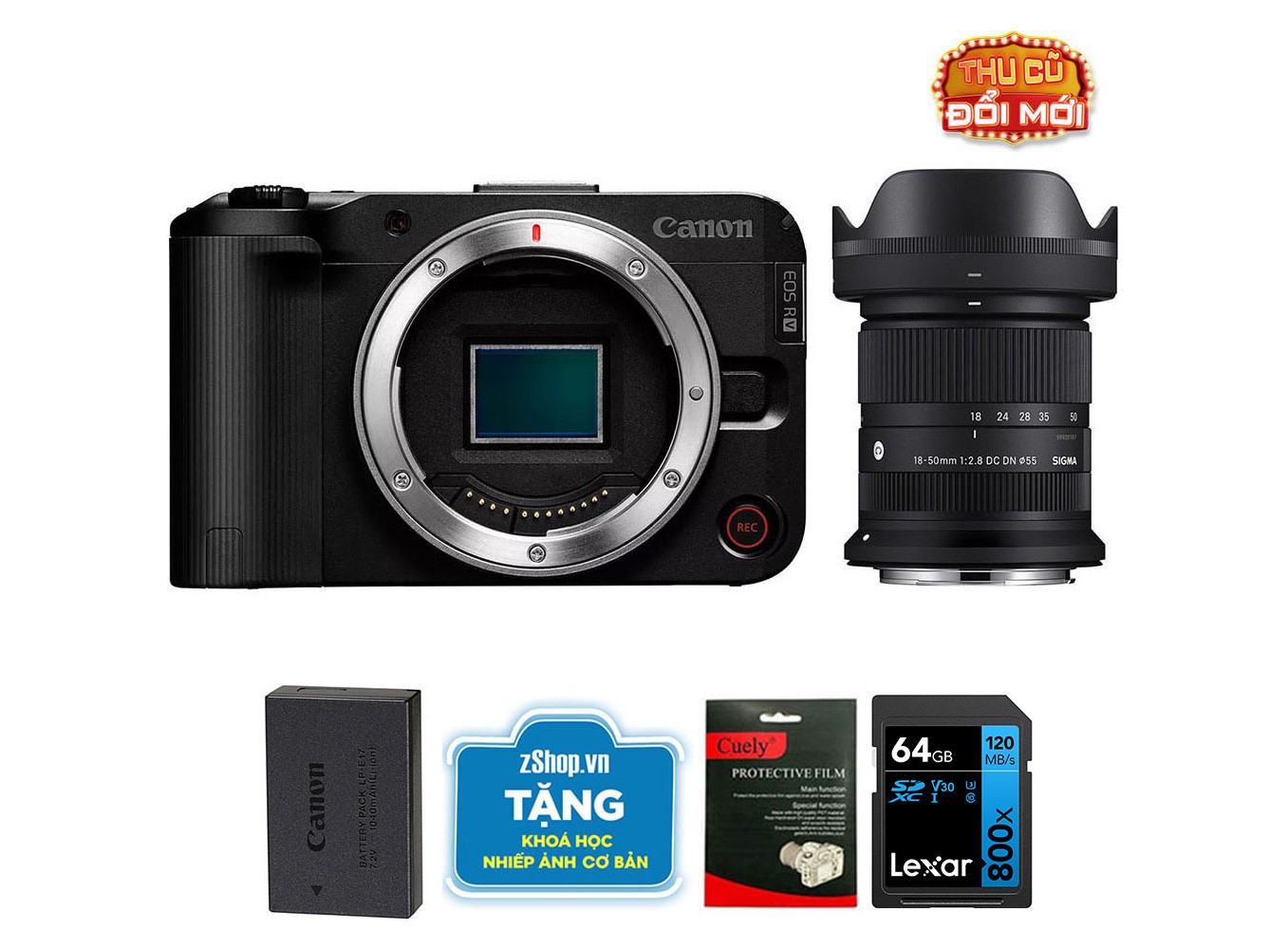 Canon EOS R50 V (Chính hãng) (Kèm Lens Sigma 18-50mm f/2.8, Black, Pin + Thẻ Nhớ 64GB + Khóa Học Nhiếp Ảnh + Dán Màn Hình)