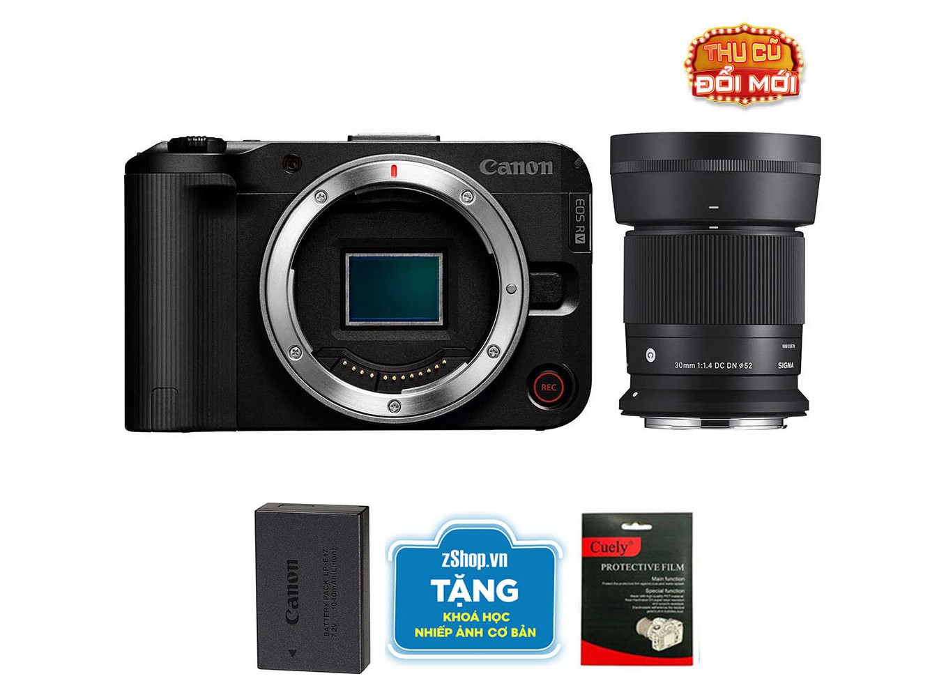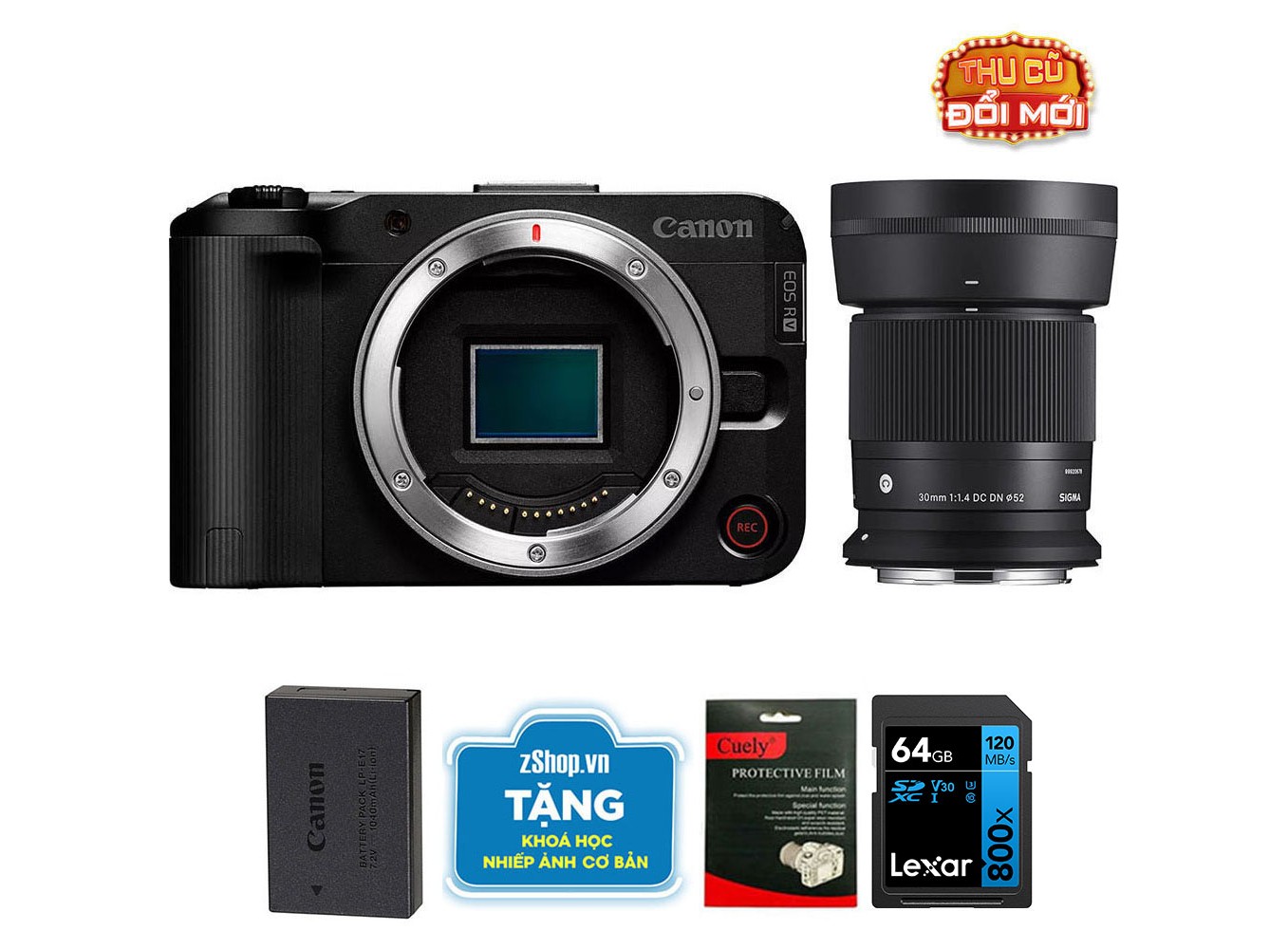 Canon EOS R50 V (Chính hãng) (Kèm Lens Sigma 30mm f/1.4, Black, Pin + Thẻ Nhớ 64GB + Khóa Học Nhiếp Ảnh + Dán Màn Hình)