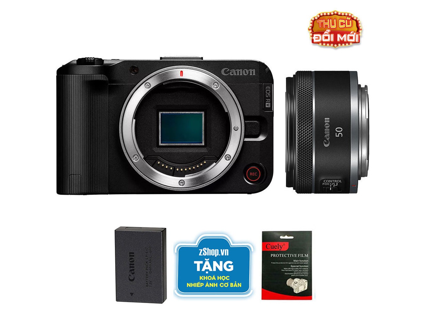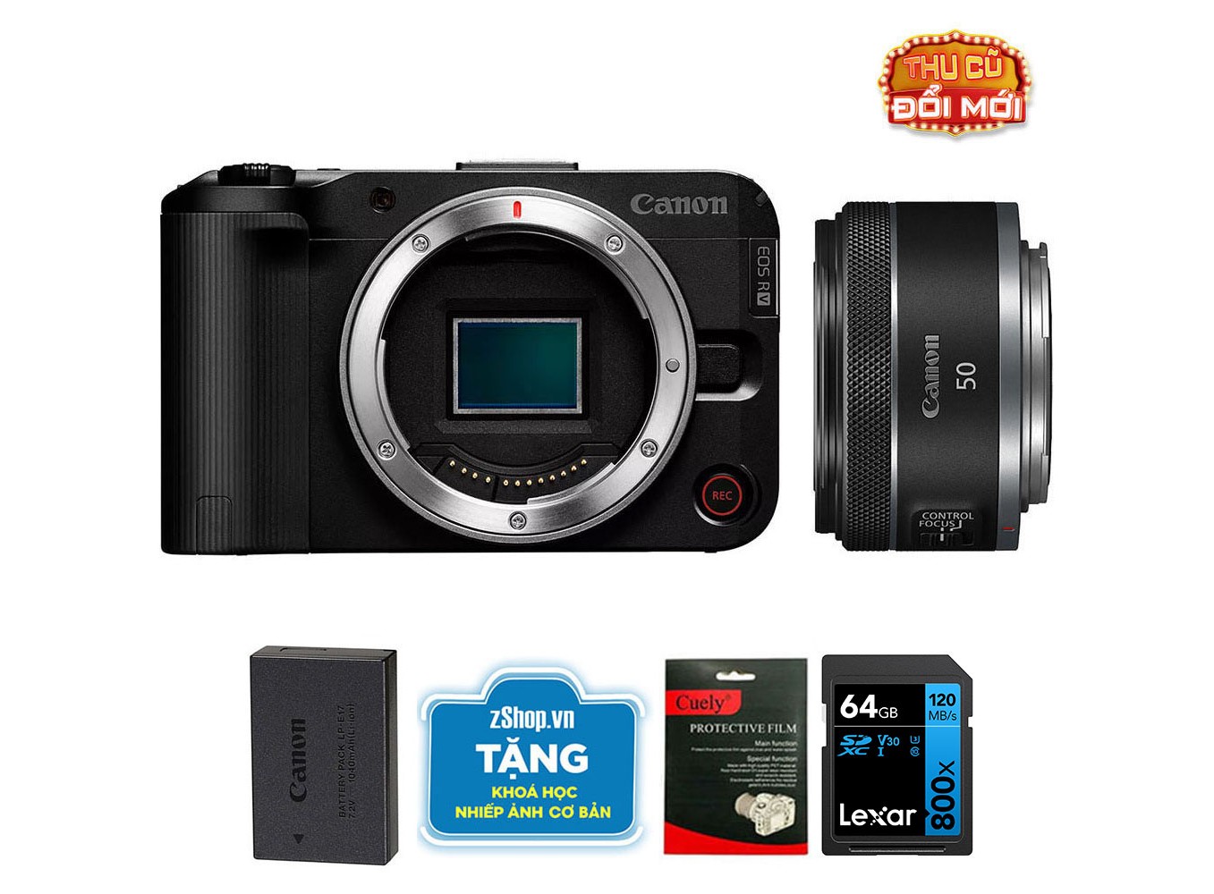 Canon EOS R50 V (Chính hãng) (Kèm Lens Canon RF 50mm f/1.8 STM, Black, Pin + Thẻ Nhớ 64GB + Khóa Học Nhiếp Ảnh + Dán Màn Hình)
