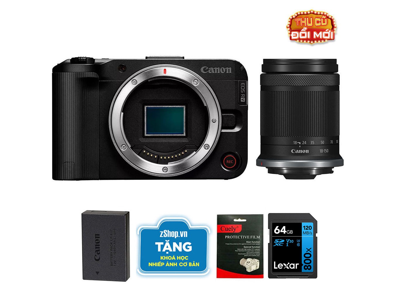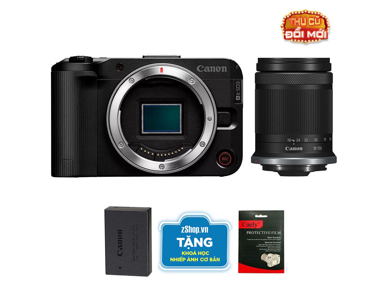 Canon EOS R50 V (Chính hãng) (Kèm Lens Canon RF-S 18-150mm f/3.5-6.3, Black, Pin + Thẻ Nhớ 64GB + Khóa Học Nhiếp Ảnh + Dán Màn Hình)