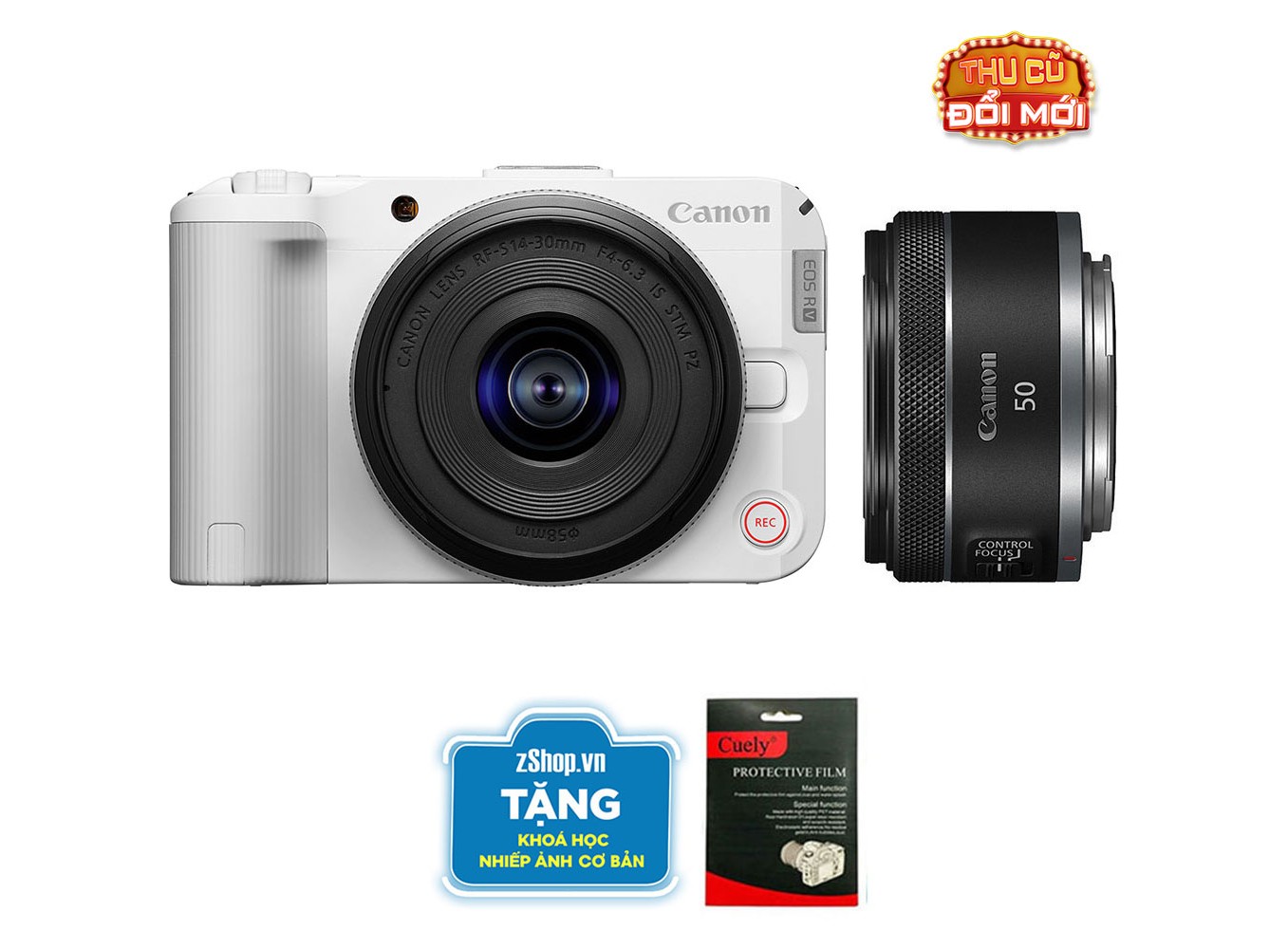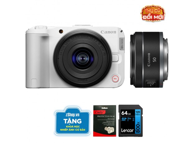 Canon EOS R50 V (Chính hãng) (Kèm Kit Lens 14-30mm + Canon RF 50mm f/1.8 STM, White, Thẻ Nhớ 64GB + Khóa Học Nhiếp Ảnh + Dán Màn Hình)
