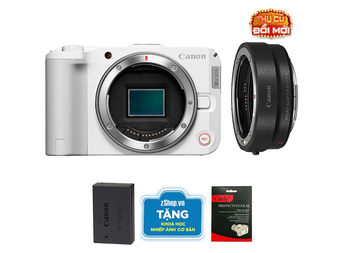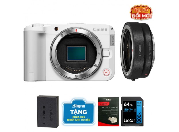 Canon EOS R50 V (Chính hãng) (Kèm Ngàm Canon EF-EOS R, White, Pin + Thẻ Nhớ 64GB + Khóa Học Nhiếp Ảnh + Dán Màn Hình)