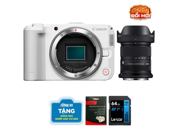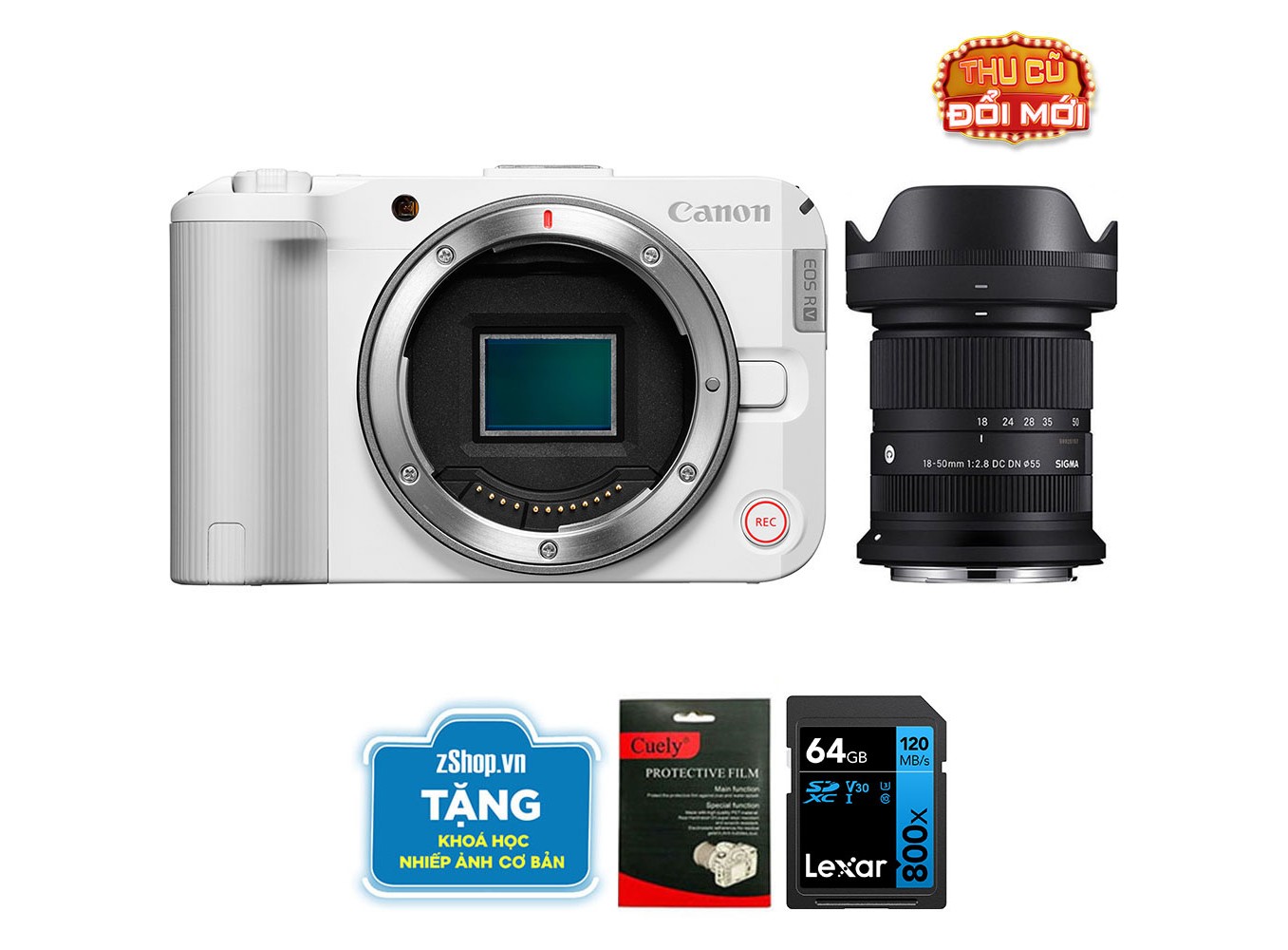 Canon EOS R50 V (Chính hãng) (Kèm Lens Sigma 18-50mm f/2.8, White, Thẻ Nhớ 64GB + Khóa Học Nhiếp Ảnh + Dán Màn Hình)