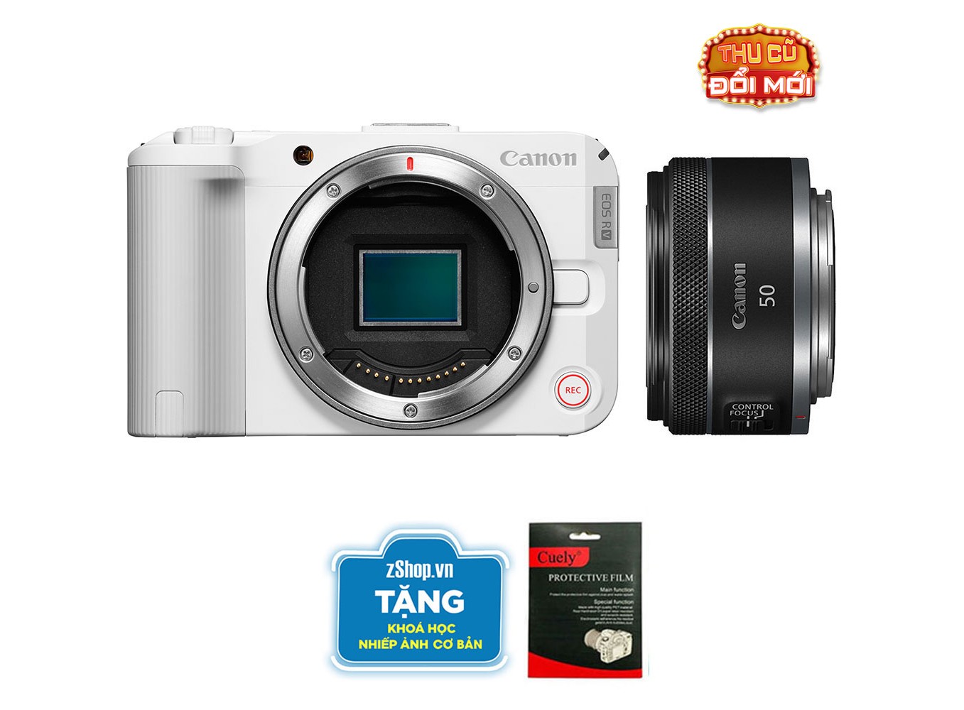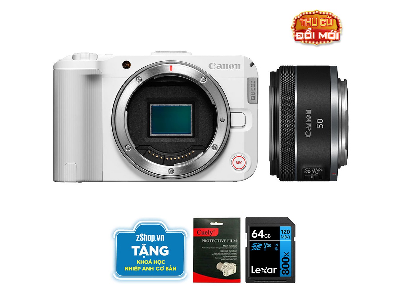 Canon EOS R50 V (Chính hãng) (Kèm Lens Canon RF 50mm f/1.8 STM, White, Thẻ Nhớ 64GB + Khóa Học Nhiếp Ảnh + Dán Màn Hình)