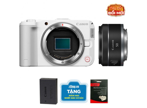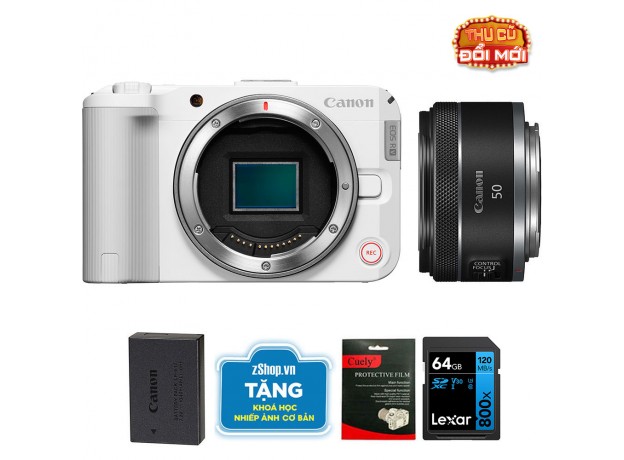 Canon EOS R50 V (Chính hãng) (Kèm Lens Canon RF 50mm f/1.8 STM, White, Pin + Thẻ Nhớ 64GB + Khóa Học Nhiếp Ảnh + Dán Màn Hình)