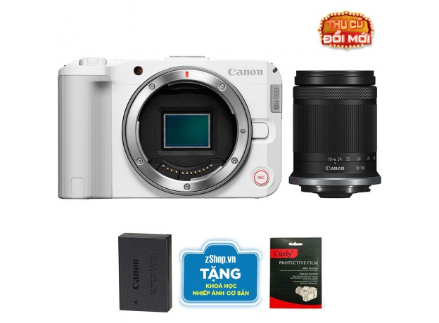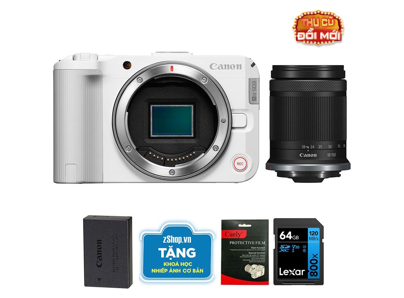 Canon EOS R50 V (Chính hãng) (Kèm Lens Canon RF-S 18-150mm f/3.5-6.3, White, Pin + Thẻ Nhớ 64GB + Khóa Học Nhiếp Ảnh + Dán Màn Hình)