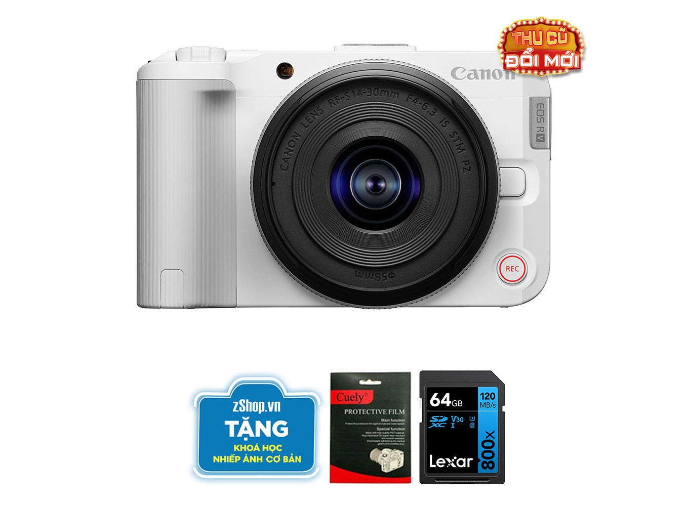 Canon EOS R50 V (Chính hãng) (Kèm Kit Lens 14-30mm, White, Thẻ Nhớ 64GB + Khóa Học Nhiếp Ảnh + Dán Màn Hình)