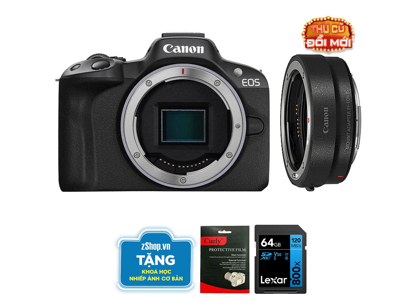 Canon EOS R50 (Kèm Ngàm Canon EF-EOS R, Black, Hàng Mới Chính Hãng)