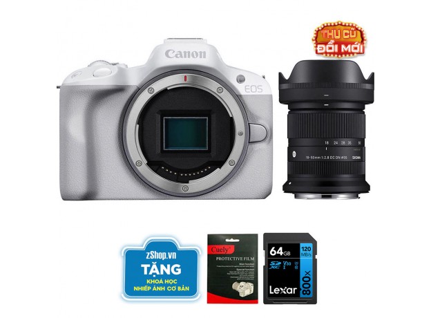 Canon EOS R50 (Kèm Lens Sigma RF-S 18-50mm f/2.8, White, Hàng Mới Chính Hãng)