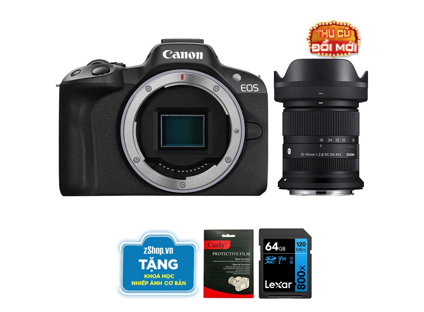 Canon EOS R50 (Kèm Lens Sigma RF-S 18-50mm f/2.8, Black, Hàng Mới Chính Hãng)