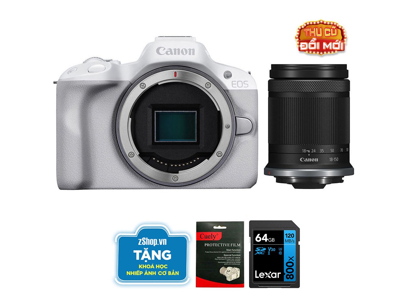 Canon EOS R50 (Kèm Lens Canon RF-S 18-150mm f/3.5-6.3, White, Hàng Mới Chính Hãng)