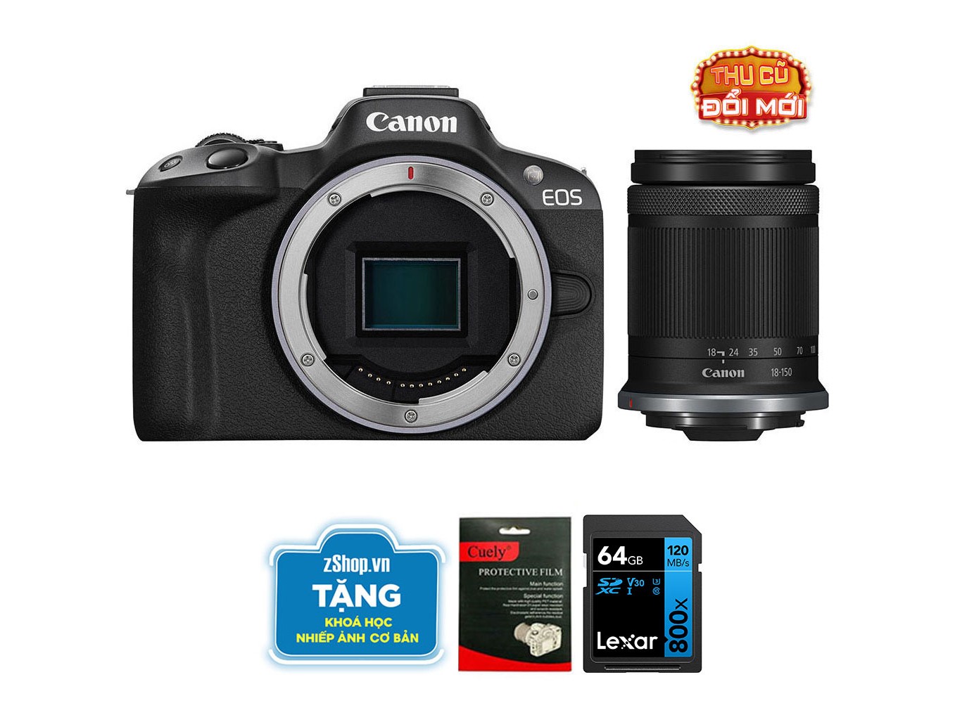 Canon EOS R50 (Kèm Lens Canon RF-S 18-150mm f/3.5-6.3, Black, Hàng Mới Chính Hãng)