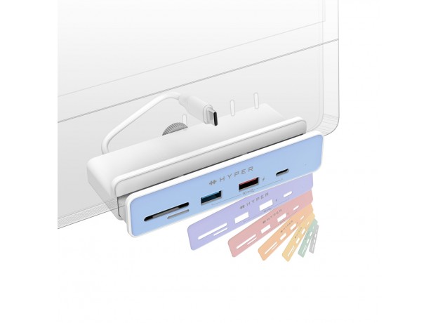 Cổng chuyển HyperDrive HDMI 4K60Hz 6-in-1 USB-C Hub HD34A8 có thiết kết chặt chẽ, đẹp mắt, tháo lắp dễ dàng nhanh chóng, băng thông và công suất mạnh đã nhanh chóng làm cho hầu hết người dùng toàn cầu mong muốn sở hữu ngay. Cổng chuyển HD34A8 giúp mở rộng khả năng kết nối iMac 24" qua cổng USB-C kẹp liền mạch, chắc chắn tạo ra một khối liên kết đẹp mắt cho iMac của bạn. 7 miếng dán theo từng màu iMac 24" được tặng kèm thông minh và tiết kiệm cho chính bạn nếu có nhu cầu đổi màu máy.