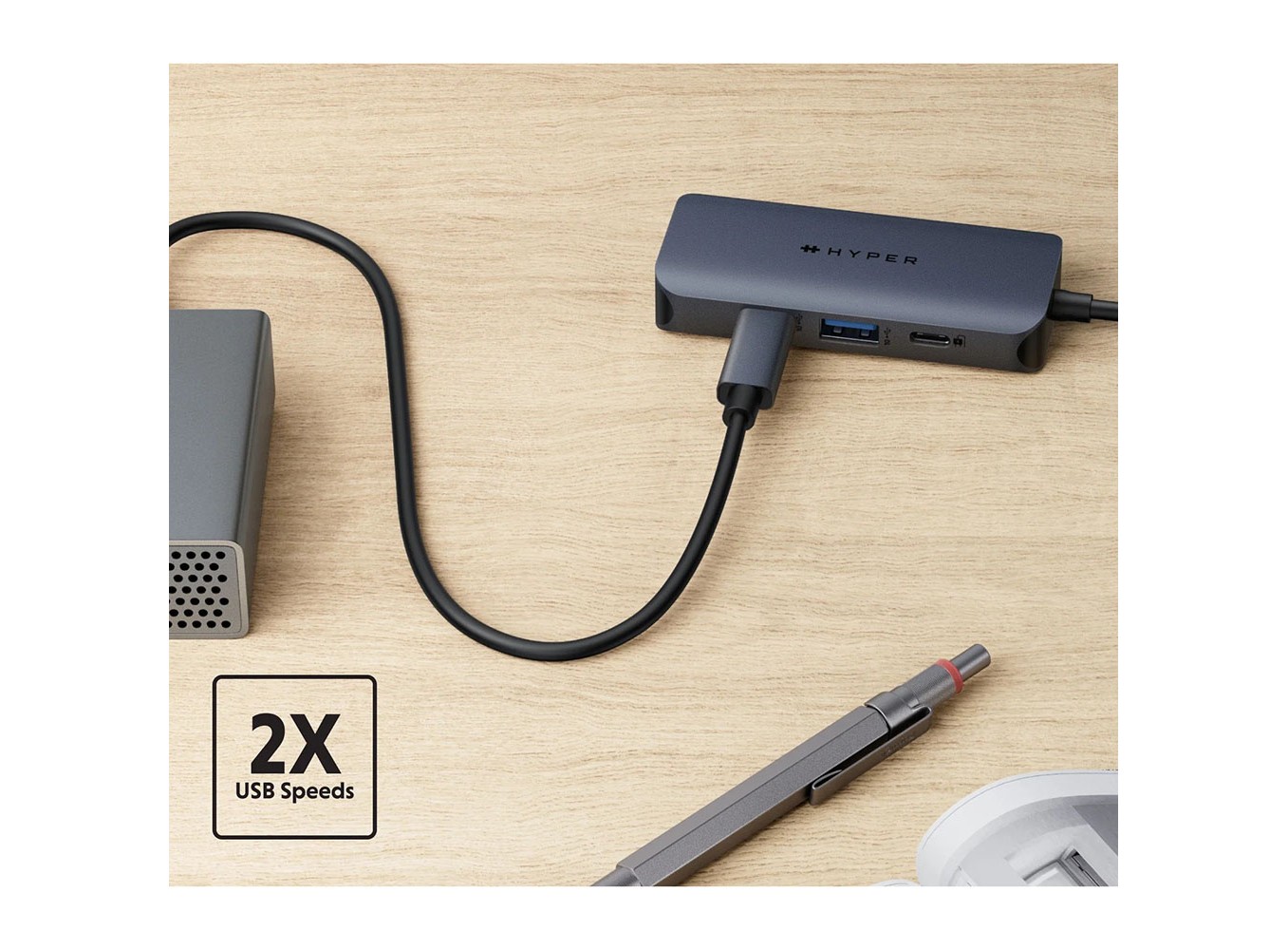 Cổng chuyển HyperDrive Next 4 Port USB-C Hub là giải pháp kết nối di động cho người sáng tạo, biên tập video, nhiếp ảnh gia và nhiều hơn nữa. Với hỗ trợ màn hình 4K60Hz mở rộng cho Mac, PC và Chromebook và 4 cổng siêu nhanh, bạn có thể thỏa sức sáng tạo ở nhà hoặc khi đang di chuyển. Trải nghiệm chuyển file nhanh gấp 2 lần sử dụng các cổng USB 10Gbps, sạc thiết bị của bạn với cổng truyền qua điện 100W PD và lựa chọn bền vững với EcoSmart.