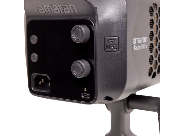 Điều khiển các cài đặt của đèn bằng cách ghép nối tức thì chỉ với một lần chạm vào ứng dụng amaran thông qua NFC tích hợp và cấp nguồn cho thiết bị bằng một cáp nguồn AC dài 5m. Halo 600x vẫn có thân máy hoàn toàn bằng kim loại nhỏ gọn và giữ lại ngàm Bowens bằng kim loại kích thước đầy đủ được gia cố để tương thích rộng rãi. Với bộ nguồn được tích hợp trực tiếp vào đèn, amaran Halo 600x đảm bảo thiết lập chiếu sáng mạnh mẽ và đáng tin cậy trong khi vẫn giữ được kích thước nhỏ gọn.