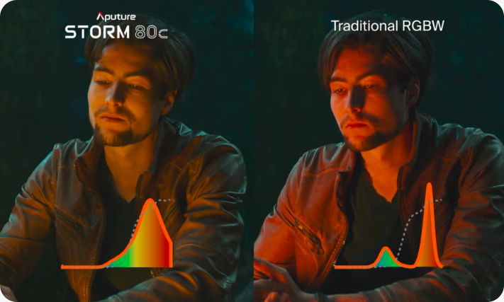 Công nghệ đèn BLAIR-CG mới của STORM 80c là đèn LED có thể điều chỉnh màu tốt nhất từng được sản xuất, mang lại phạm vi màu lớn nhất và độ chính xác màu cao nhất. Nó có thể đạt tới 90% không gian màu Rec2020, đạt được màu sắc bão hòa ở các sắc thái không thể đạt được nếu không có công nghệ này, chẳng hạn như màu vàng chính xác. Bộ phát màu chàm được hiệu chuẩn tăng cường vật liệu huỳnh quang, tạo ra ánh sáng trắng phù hợp hơn với ánh sáng ban ngày tự nhiên và vonfram. CRI 97+, SSI [P3200]): 88, SSI (CIE D5600): 84.