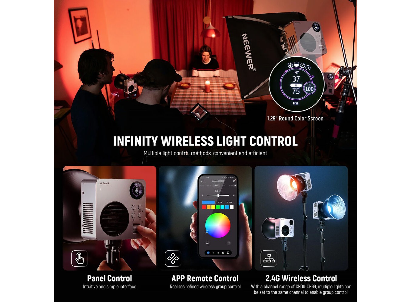 Công nghệ NEEWER Infinity tích hợp hỗ trợ cả điều khiển ứng dụng và giao tiếp không dây 2.4G để đạt được chức năng master/slave. Khi được đặt ở cùng một kênh (00-99), HB80C có thể đồng bộ hóa với các đèn NEEWER 2.4G khác, giúp điều khiển nhóm thuận tiện và hiệu quả