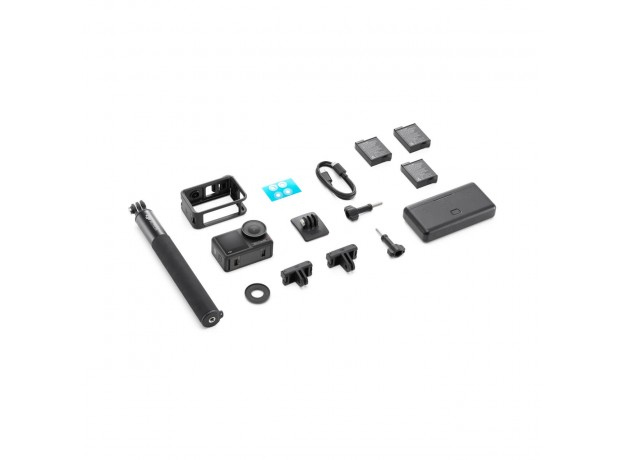Phiên bản combo tiêu chuẩn kết hợp Osmo Action 4 với pin dung lượng cao, giá đỡ bộ chuyển đổi nhả nhanh, khung bảo vệ, đế dính có viền, vít khóa, nắp đậy ống kính và cáp sạc USB-C.