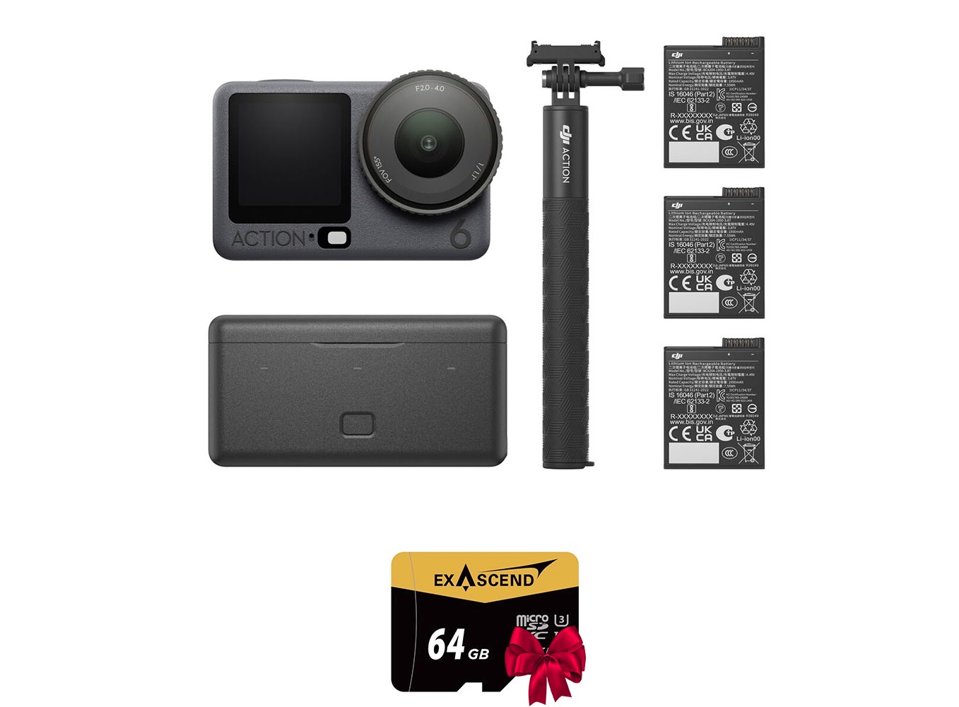 Quay video ổn định, sắc nét với độ phân giải lên đến 4K120p mọi lúc mọi nơi với DJI Osmo Action 6. Osmo Action 6 sở hữu cảm biến vuông 1/1.1" mới, chế độ Starburst, khẩu độ ống kính thay đổi từ f/2 đến f/4, bộ nhớ trong 50GB và khả năng chống chịu thời tiết tốt hơn. Máy vẫn giữ nguyên màn hình OLED kép độ sáng cao, hệ thống ổn định hình ảnh RockSteady và HorizonSteady, cảm biến 38MP, thời lượng pin 4 giờ và thân máy chống nước với đồng hồ đo áp suất nước. Các tính năng khác bao gồm ảnh tĩnh 8K, lấy nét/theo dõi chủ thể, hỗ trợ OsmoAudio, quay phim RAW, trường nhìn 155° và khe cắm thẻ SD hỗ trợ lên đến 1TB.