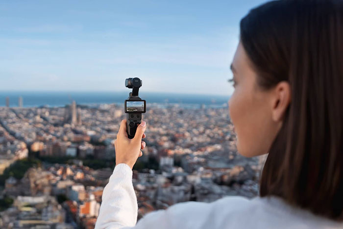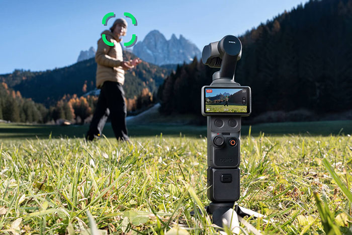 Vẫy tay và để máy ảnh theo bạn. DJI Osmo Pocket 4 bổ sung tính năng điều khiển bằng cử chỉ, cũng có thể dễ dàng quay phim khi đi du lịch một mình.
