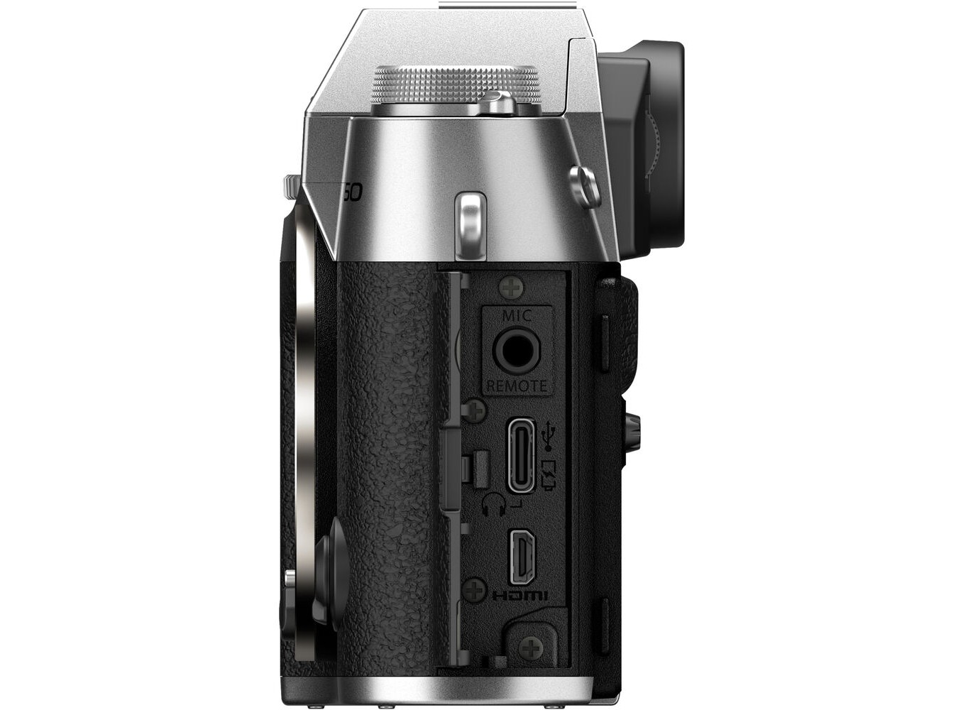X-T50 có thân máy tròn trịa mới. Mặc dù lớn hơn một chút so với X-T30 II nhưng kiểu dáng này khiến nó có cảm giác nhỏ gọn mà không ảnh hưởng đến khả năng xử lý. Phần báng cầm ngón tay cái mở rộng mượt mà ra phía ngoài so với các mẫu trước đây, mang lại cảm giác tổng thể và độ bám ấn tượng trên thân máy.