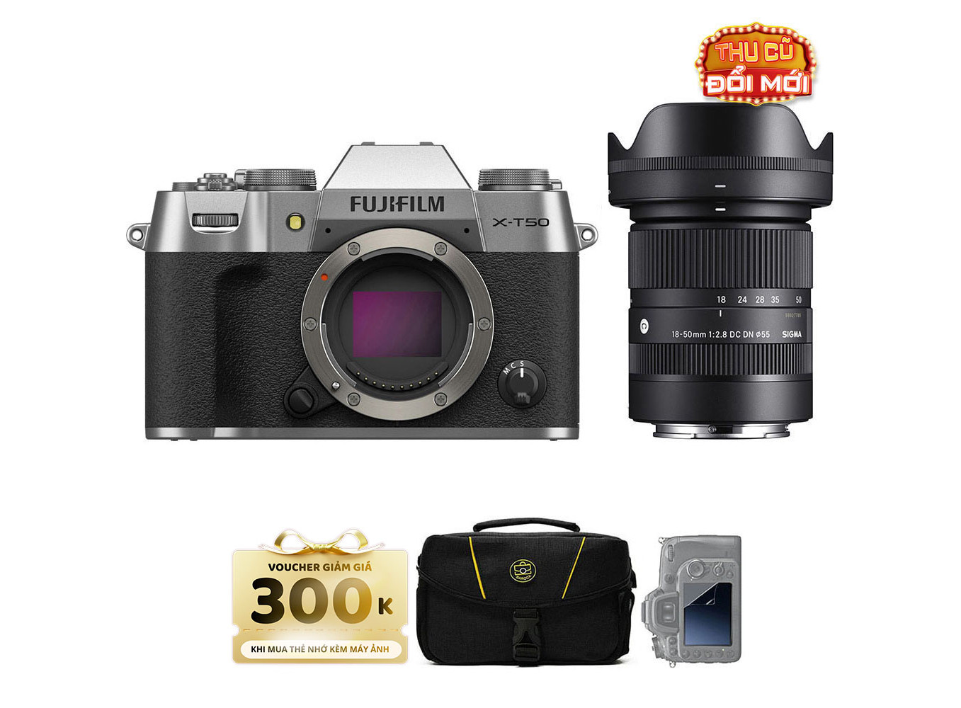 Fujifilm X-T50 (Chính hãng) (Kèm Lens Sigma 18-50mm f/2.8, Silver)
