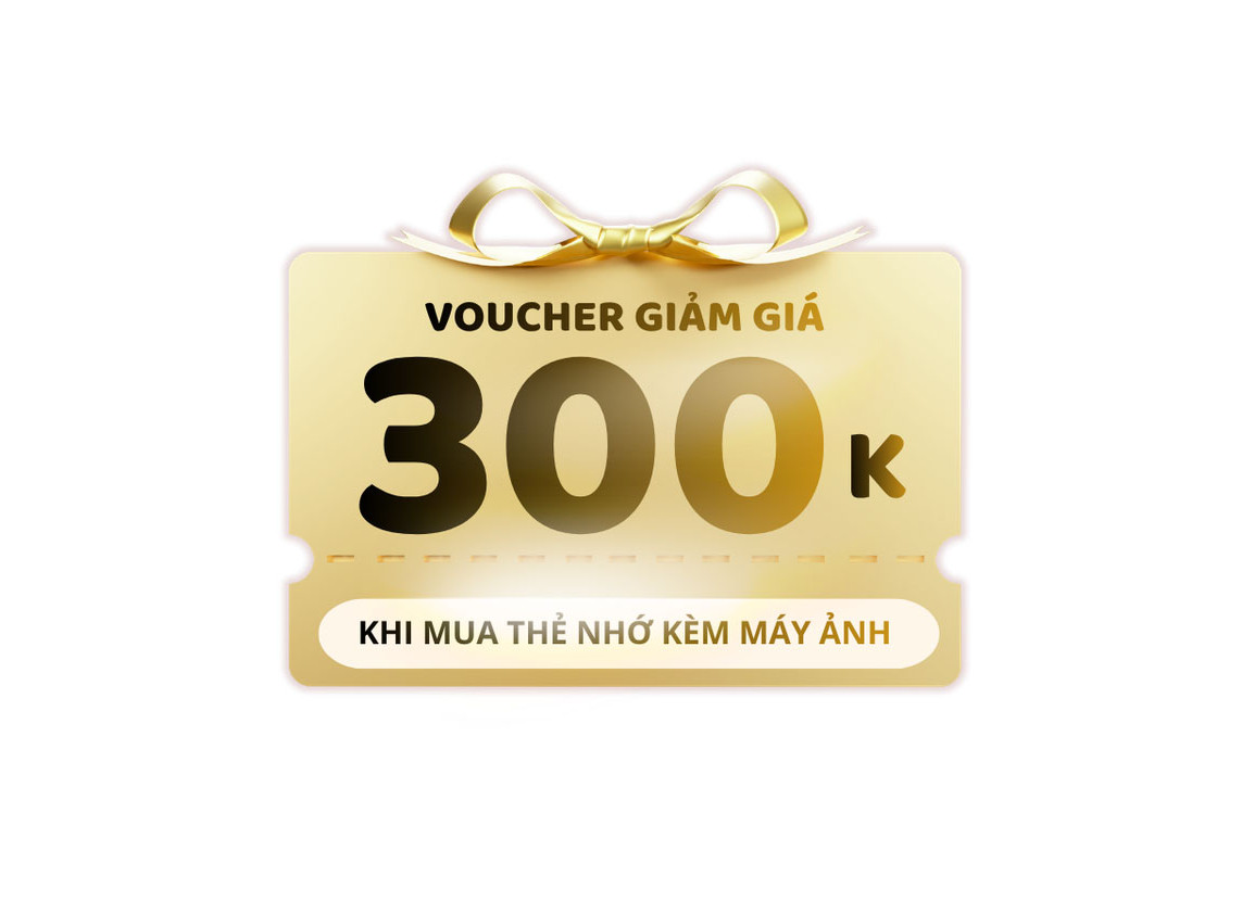 - - Voucher giảm giá 300K khi mua thẻ nhớ kèm theo máy ảnh