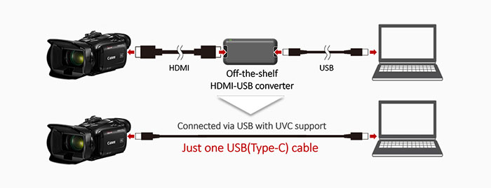 HF G70 hỗ trợ UVC để tương thích tốt hơn với máy tính. Chỉ cần kết nối camera bằng cáp USB, máy tính có thể nhận diện nó như một webcam để hội nghị trực tuyến, lớp học và nhiều hơn nữa mà không cần phần mềm đặc biệt.
