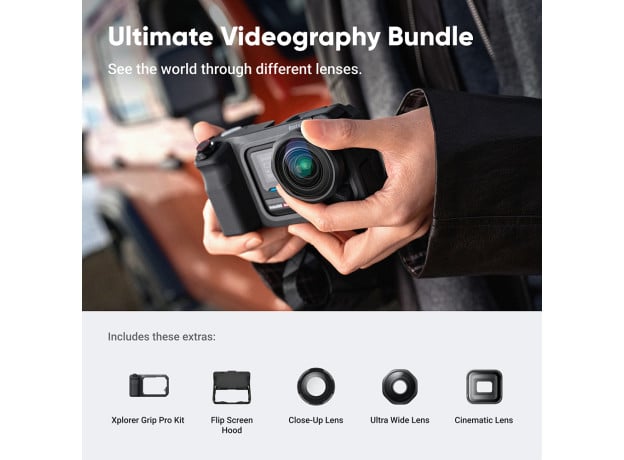 Bộ sản phẩm quay phim Insta360 Ace Pro 2 Ultimate Videography Bundle bao gồm đầy đủ ba ống kính, đáp ứng mọi nhu cầu chụp ảnh đường phố, chân dung, phong cảnh và macro. Được thiết kế dành cho những người sáng tạo đa năng.