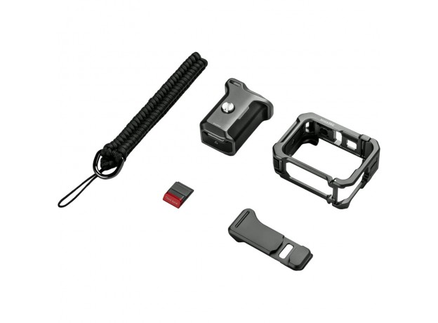 Bảo vệ camera Ace Pro hoặc Ace Pro 2 của bạn trong khi mở rộng khả năng cầm nắm và gắn kết với Insta360 Xplorer Grip Kit. Bộ sản phẩm có khung camera bằng nhôm và báng tay cầm bên phải để sử dụng camera giống như một camera cầm tay truyền thống khi di chuyển. Camera nhanh chóng lắp vào cụm khung bằng cửa bên, cho phép truy cập nhanh vào pin. Không cản trở bất kỳ bộ phận nào của màn hình hoặc đầu nối. Khung tiện ích có nút kích hoạt kiểu cách ở trên cùng để dễ dàng bắt đầu và dừng ghi hình. Ren bên 1/4"-20 và ngàm nhận có nắp cho phép gắn thêm phụ kiện và bạn có thể gắn nó ở phía dưới bằng kết nối của camera.