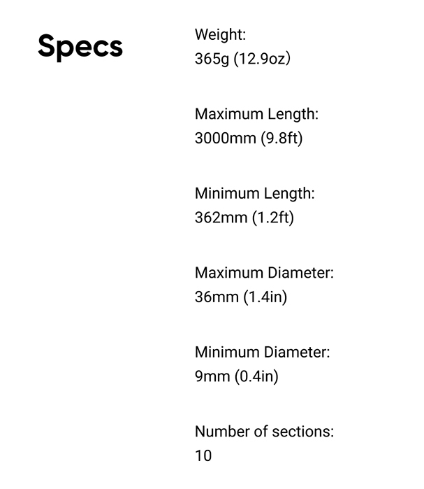 Đạt đến cả hai tiêu chí, gậy tự sướng này có thể gập lại từ 3m xuống chỉ còn 38cm! Cực kỳ tiện lợi khi cất giữ hoặc mang theo.