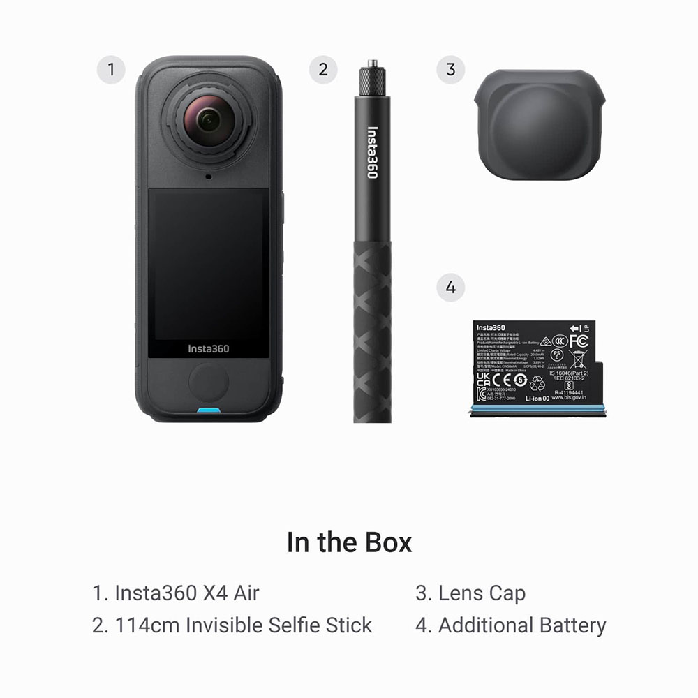 Quay video 360° đậm chất điện ảnh với Insta360 X4 Air, có khả năng quay video 360° 8K30 ở chế độ ống kính kép hoặc đơn, tất cả trong một camera hành động di động. Nhỏ hơn và nhẹ hơn camera X4, X4 Air cũng có thiết kế chắc chắn và khả năng chống nước ở độ sâu lên đến 15m.
