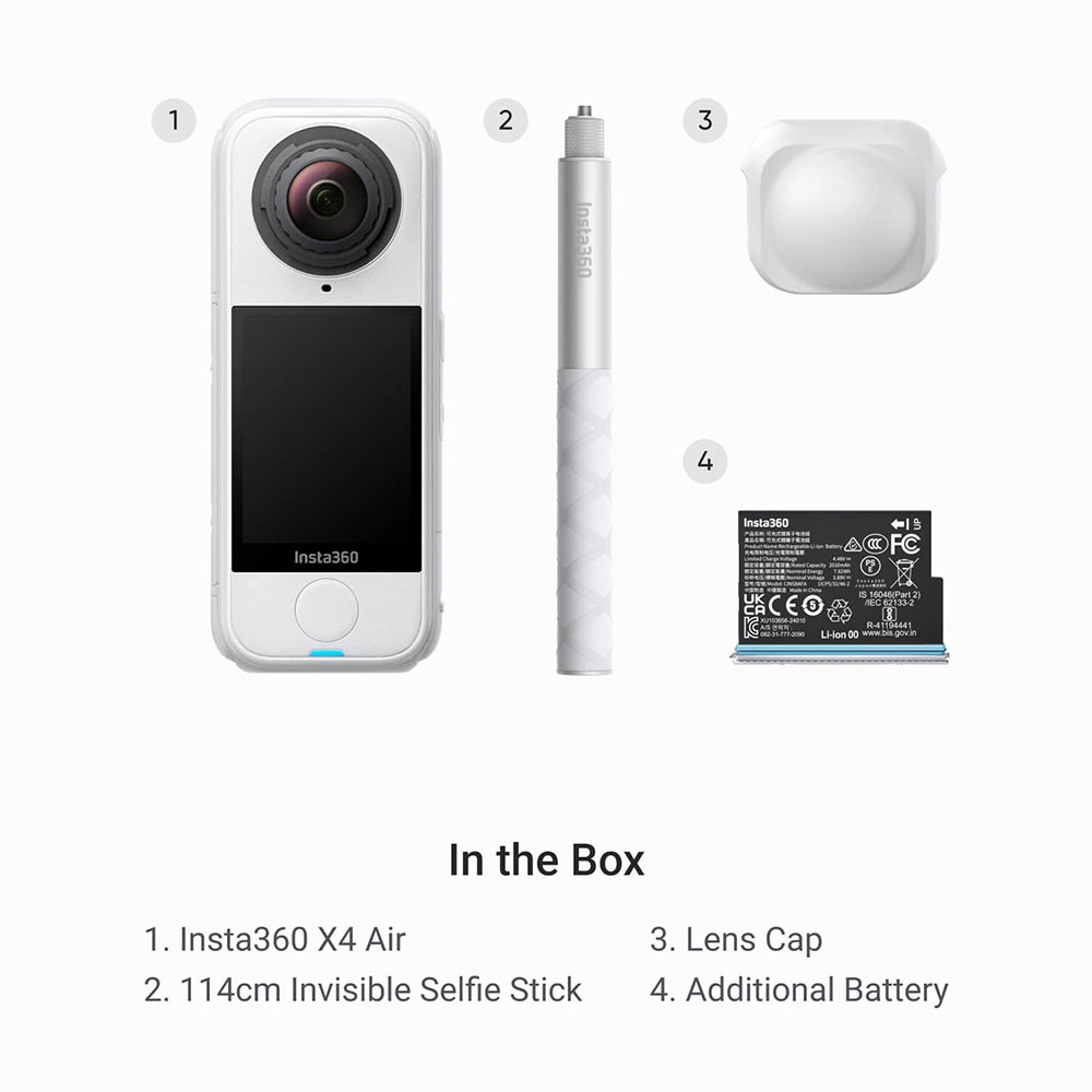 Quay video 360° đậm chất điện ảnh với Insta360 X4 Air, có khả năng quay video 360° 8K30 ở chế độ ống kính kép hoặc đơn, tất cả trong một camera hành động di động. Nhỏ hơn và nhẹ hơn camera X4, X4 Air cũng có thiết kế chắc chắn và khả năng chống nước ở độ sâu lên đến 15m.